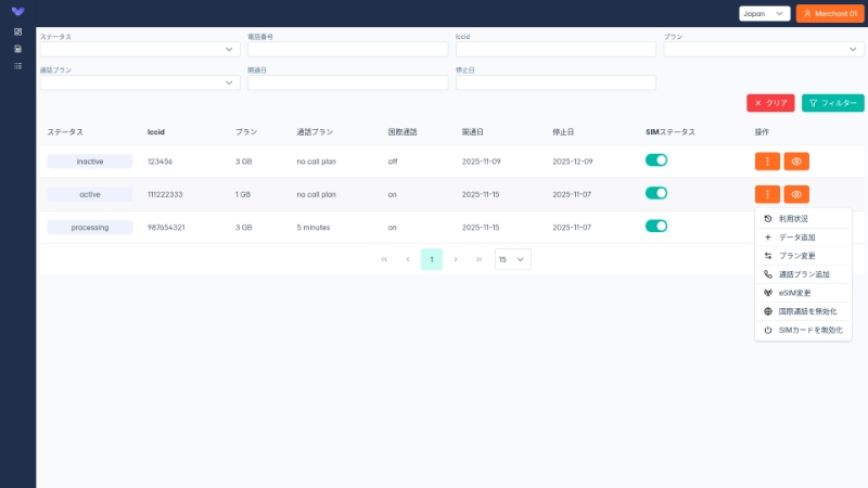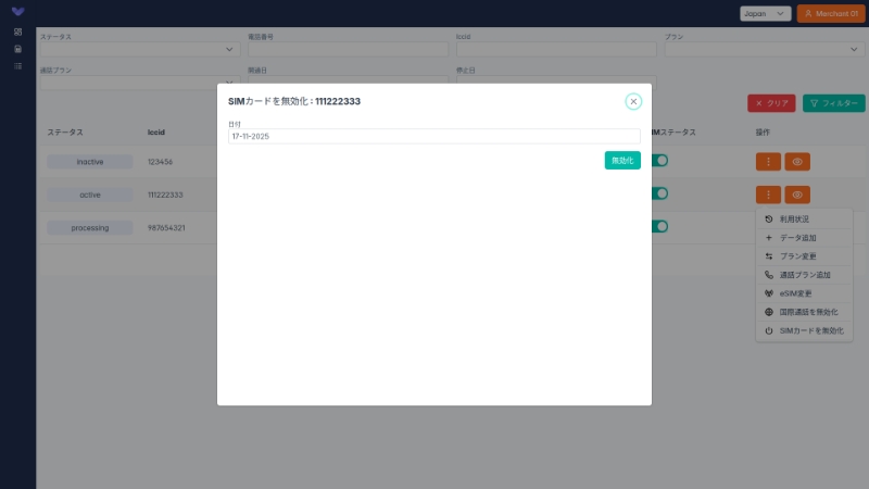 2回目以降のご発注では未開通状態のSIMを在庫いただくことが可能です。未開通SIMをコンソールより開通し、即日の利用ができるようになります。