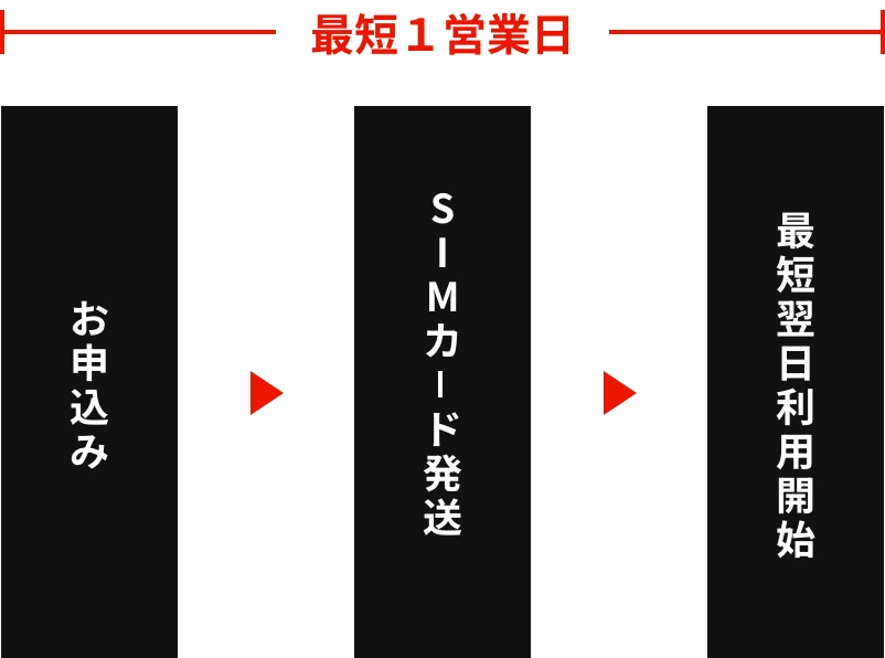 当社は最短で当日発送が可能なため、急にSIMカードが必要になった際でも翌日に利用ができます。