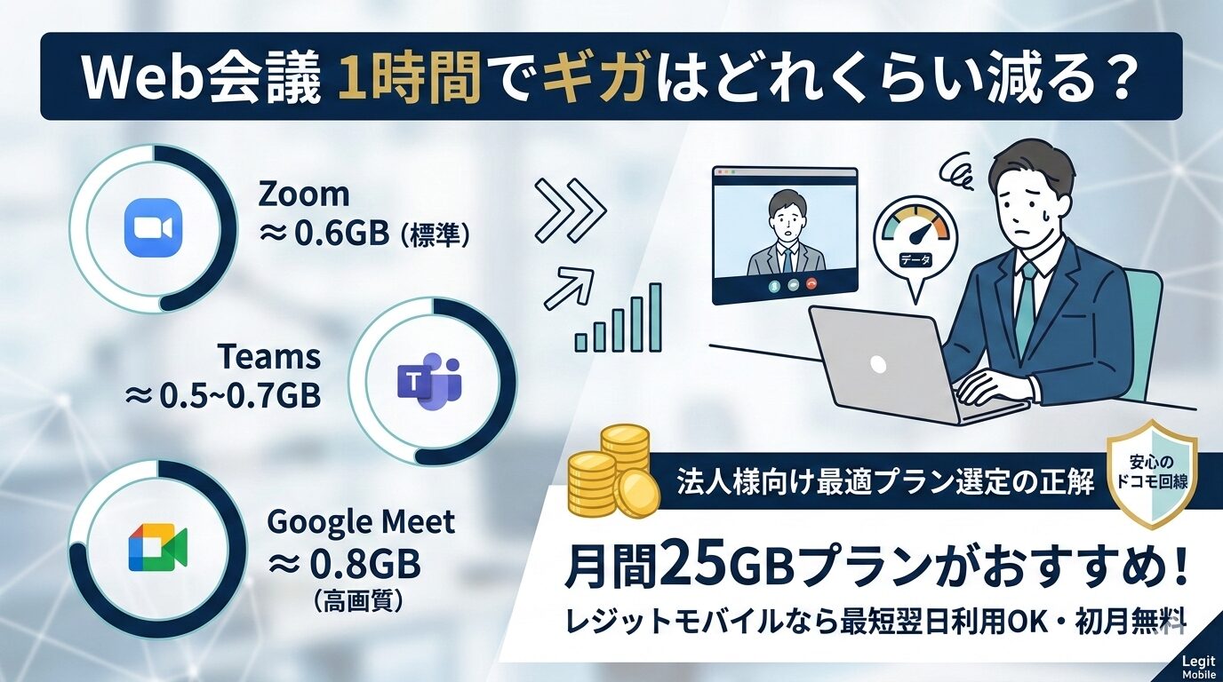 Web会議1時間でギガはどれくらい減る?Zoom・Teams利用が多い企業の最適なプラン選定