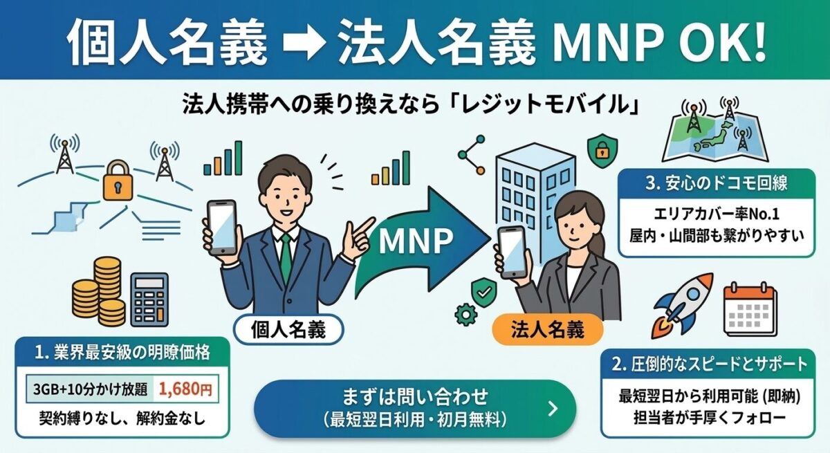 個人名義から法人名義へMNPしたい!法人携帯への名義変更なら「レジットモバイル」が最適な理由